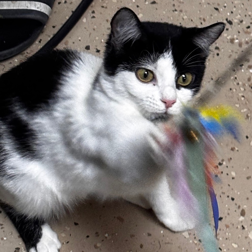 ☕ Latte is an affectionate and curious girl who shares a close bond with her sister, Choco. Found abandoned together as tiny kittens, Latte has grown into a confident, energetic, and loving cat. Though she may be a little shy at first, it doesn’t take long for her sweet and playful side to shine through.