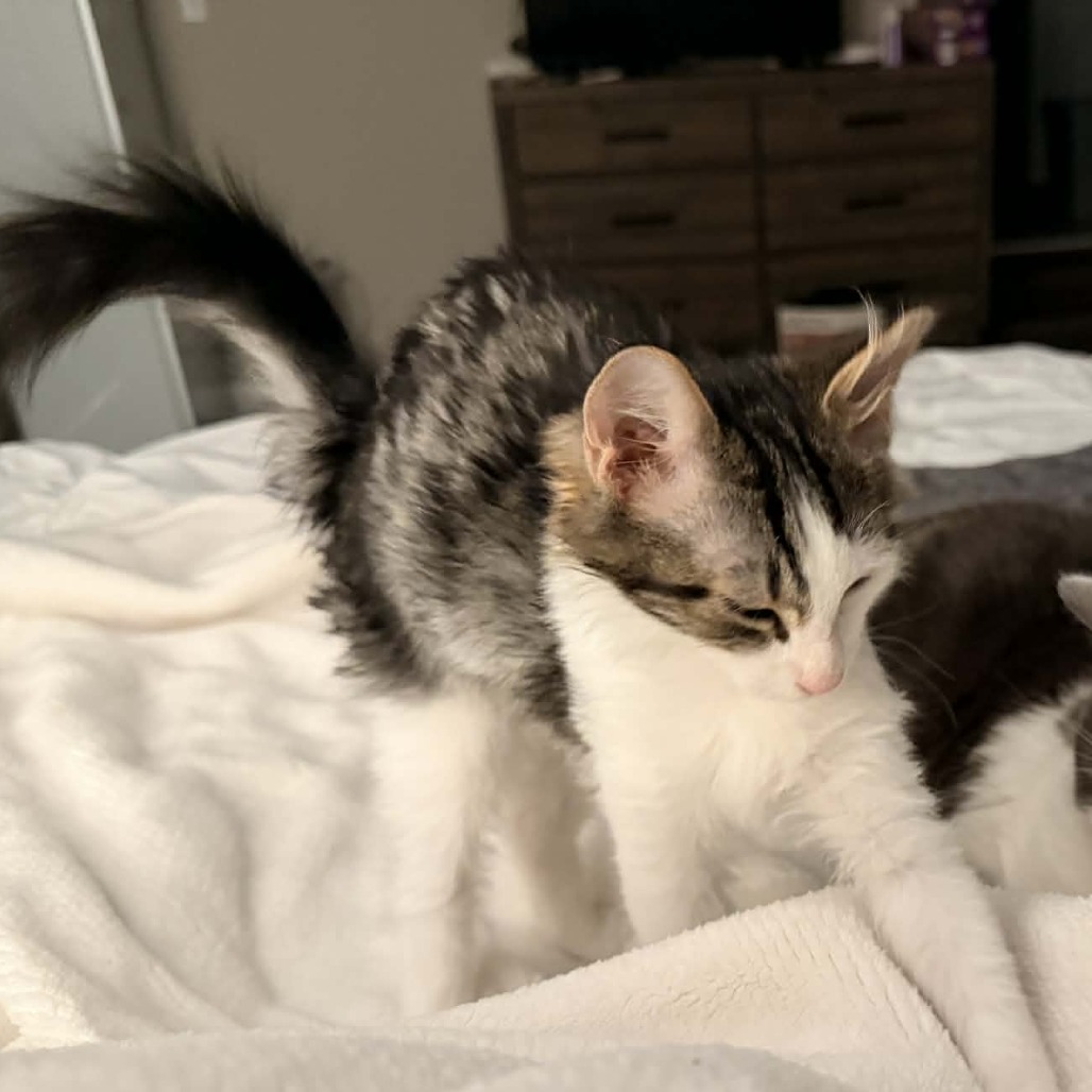 Smokey is looking for a forever home that understands he needs a little time to trust—and ideally, a feline friend to help guide him. In return, he will give you quiet loyalty, sweet companionship, and the joy of watching a shy kitten blossom into a loving family member.