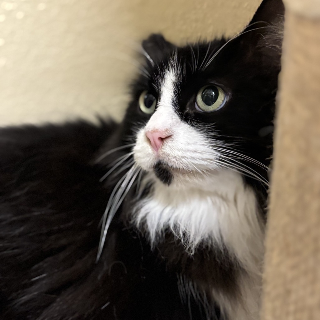 He’s fully litter box trained, quiet, and easygoing once settled. Snorlax is looking for a patient, understanding home that will give him the time he needs to adjust. In return, he’ll reward you with quiet trust, affection, and the joy of watching a shy soul slowly come out of his shell.